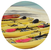 Rental snorkeling sets are high quality silicon mask and snorkel set. For the safety, almost all the size of life jackets are available. Fun ride rental is also available. You can explore the beautiful water from the kayak or pedal boat.